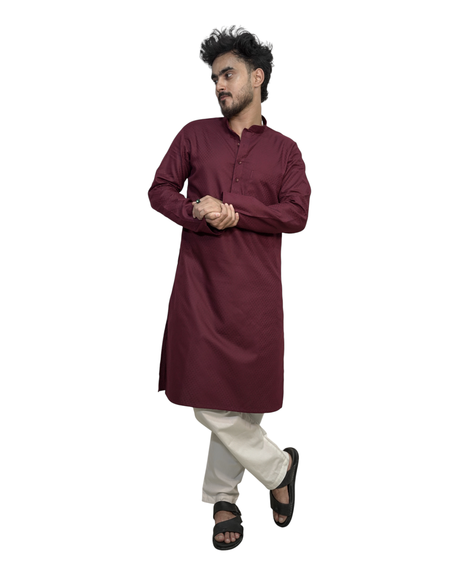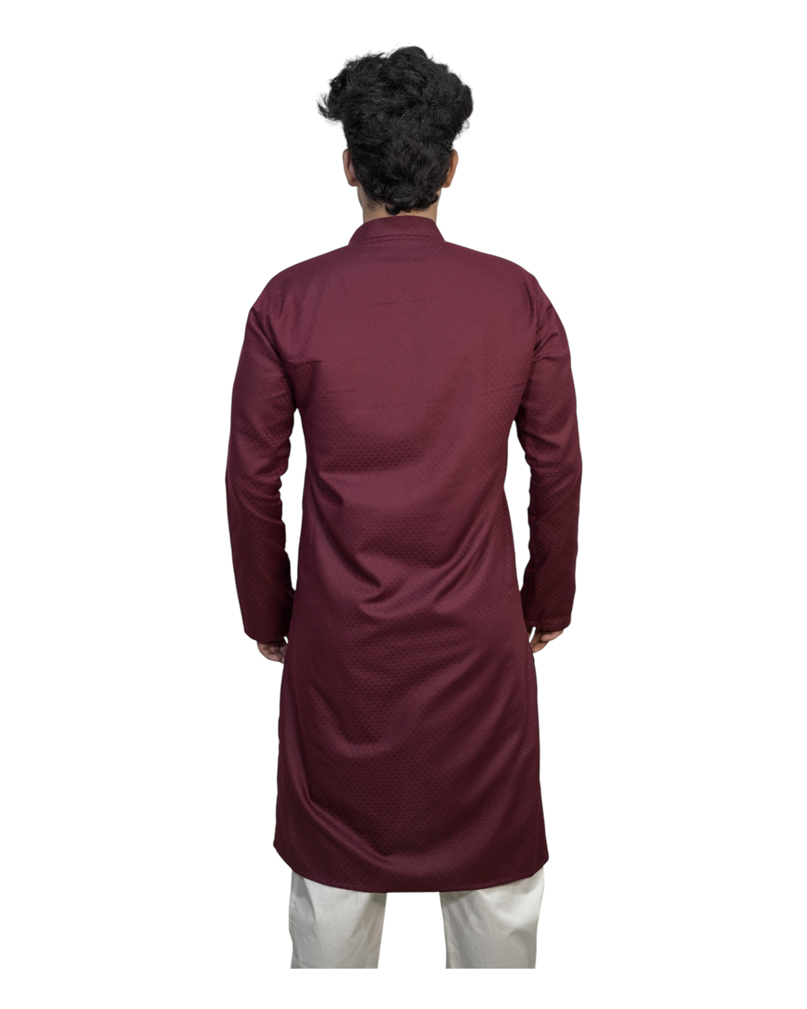 Crafted from premium cotton jacquard fabric, this kurta features a subtle self-woven texture that enhances its deep maroon tone. The mandarin collar and straight comfort fit make it versatile for weddings, festivals, and family celebrations.