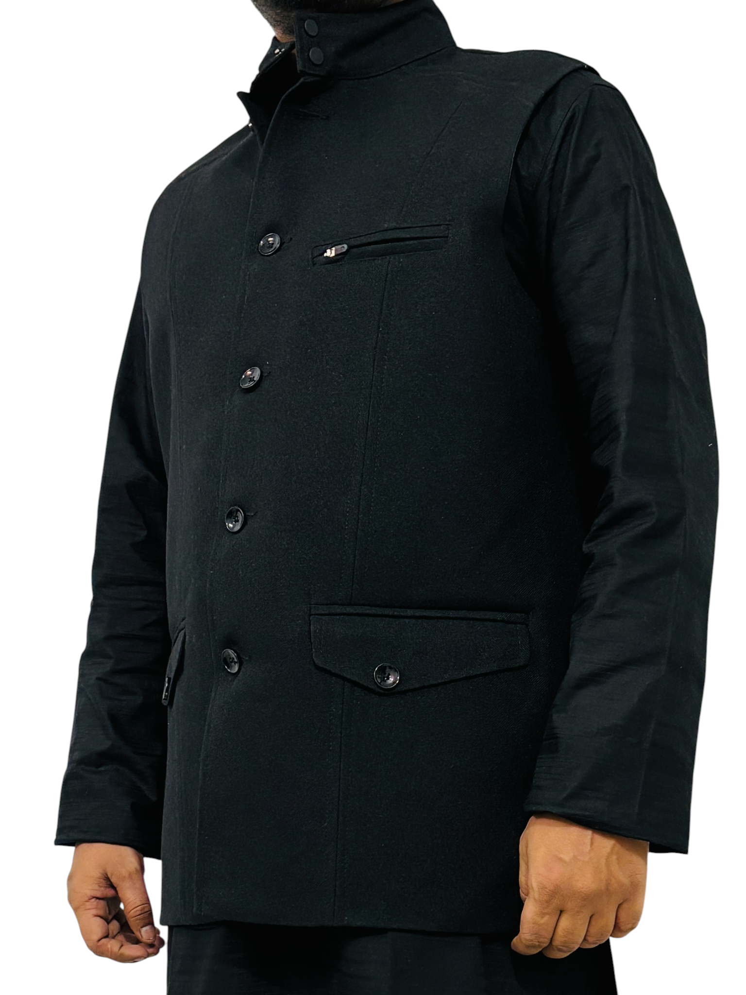Murih Men’s Black Tweed Nehru Jacket | Ethnic Winter Modi Waistcoat